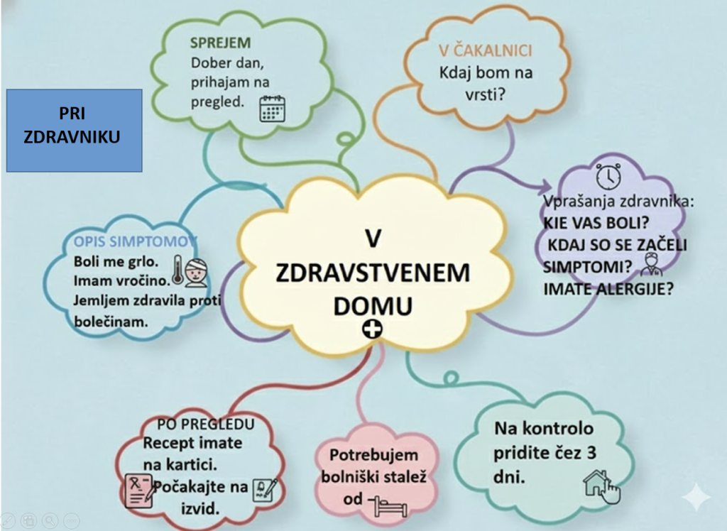 Zdravnik: Dober dan. Sedite, prosim. Kaj je narobe?